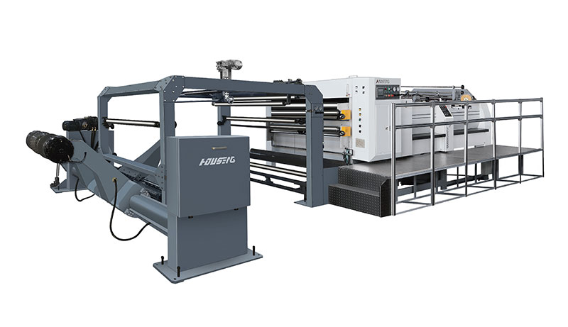 Automatic paper roll-to-sheet cutting machine with auto stacker and trimmer, the feature is a cost-effective, high-speed cutter, high-precision models, has high-speed, smooth, powerless trimming and slitting functions, and has quick adjustment and locking functions.